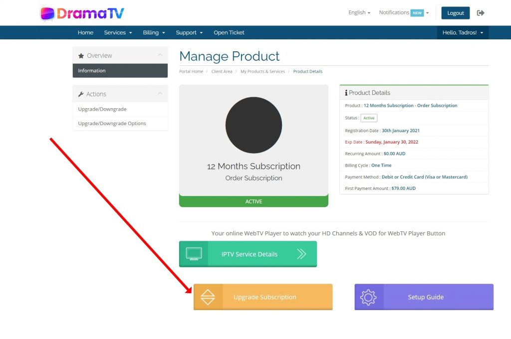 You can upgrade your current subscription by doing the following steps: