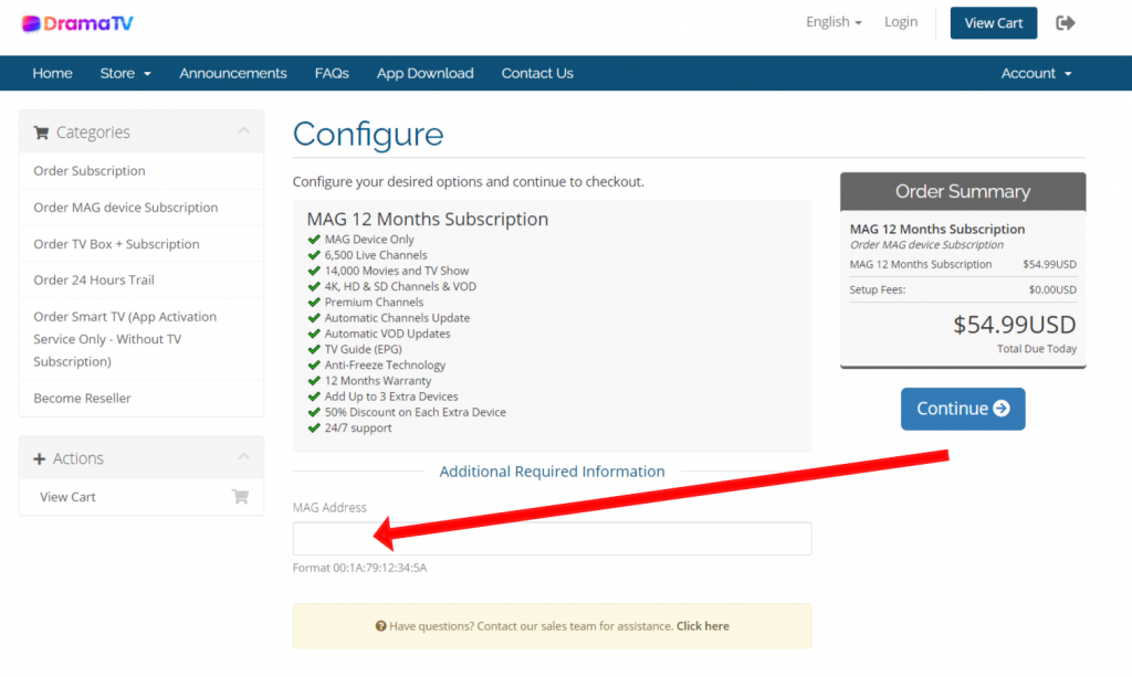 Important Note: Make sure to add your MAG device mac address during Check-Out Order … as showing in the below image:
